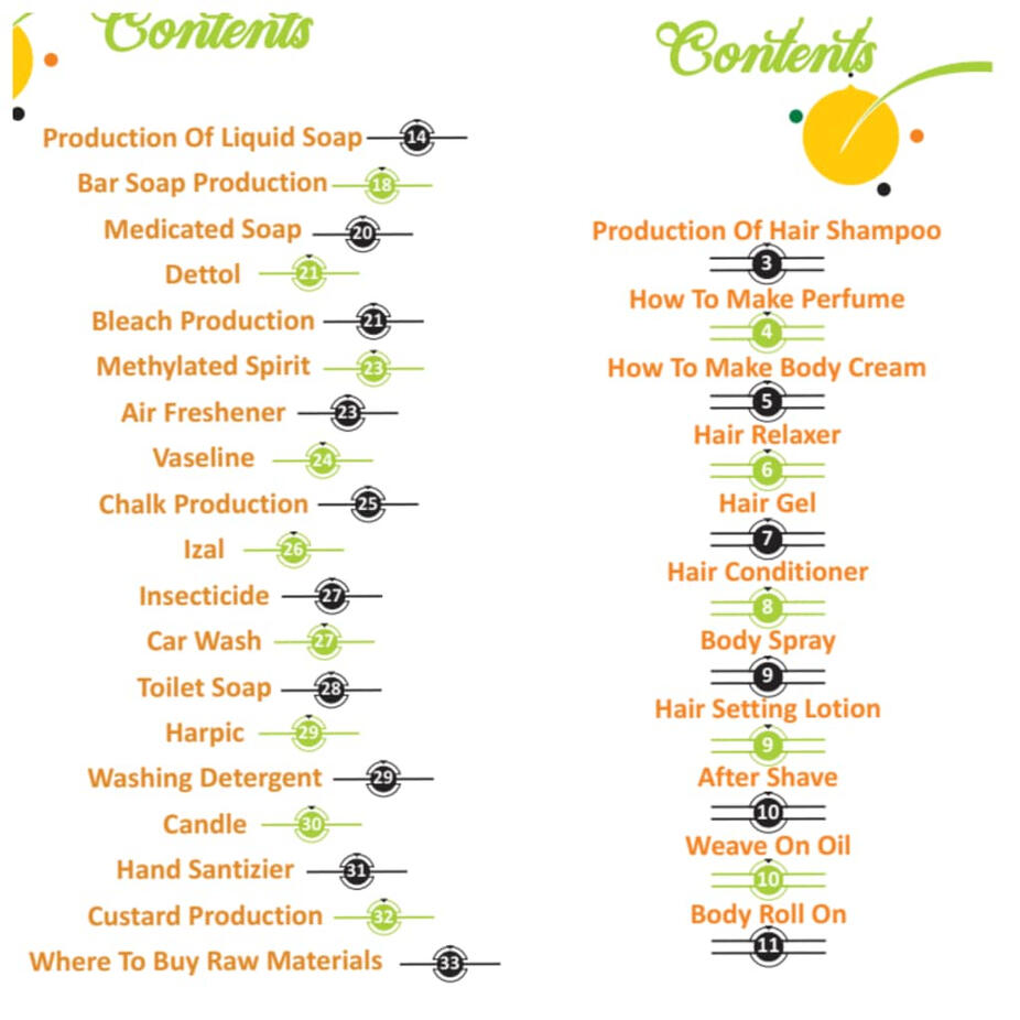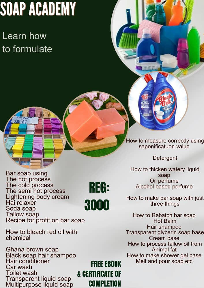We make use of well DETAILED VIDEOS and a FREE E-BOOK containing how to produce over 20 different kinds of soap.